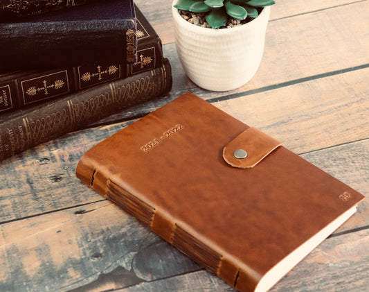 6x9 Personalized Leather Planner, Rustic Refillable OR Sewn 2022 Daily, Weekly, Monthly, Yearly Planning Journal, Premium Graduation Gift