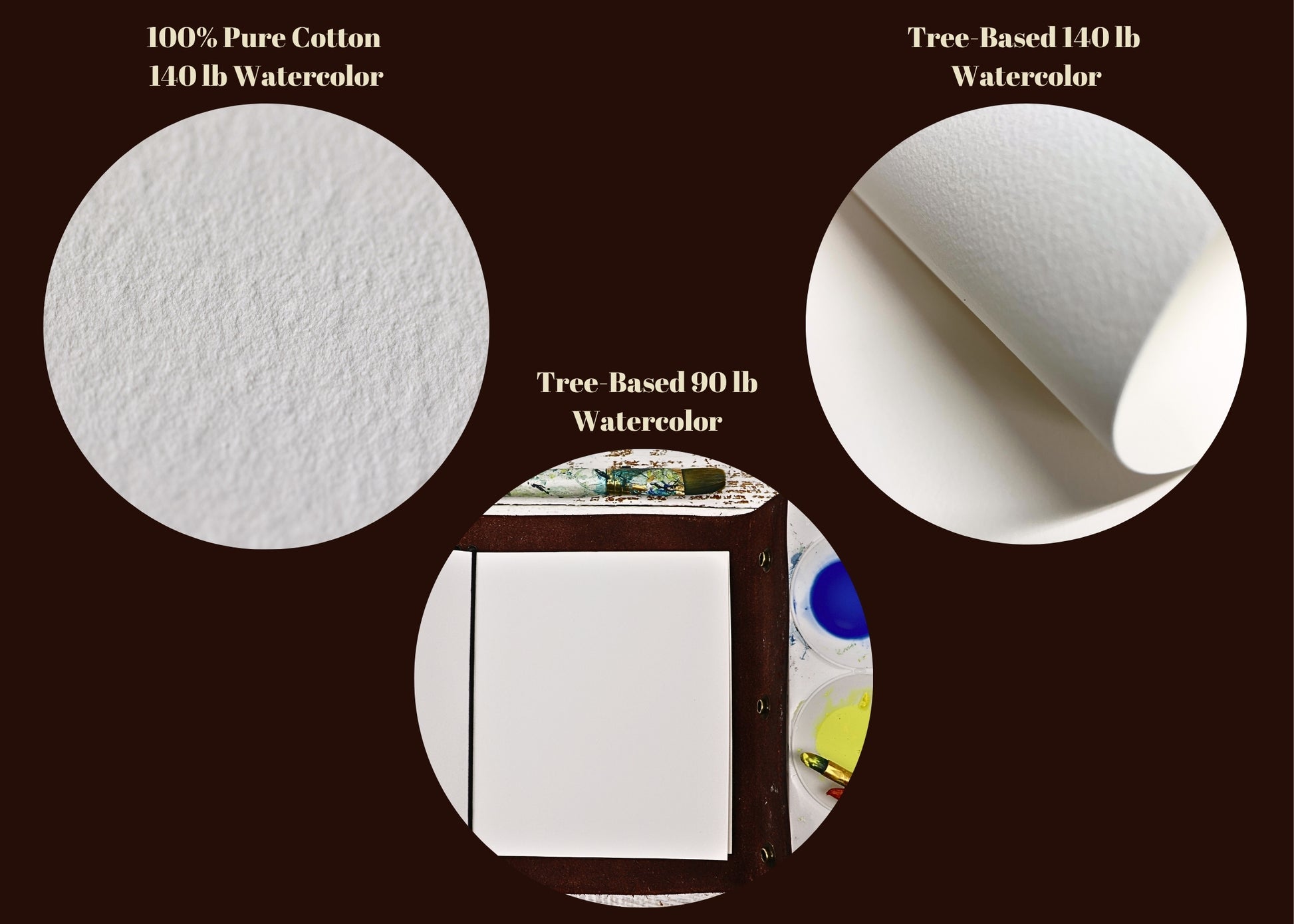 TREE-BASED WATERCOLOR (Wood Pulp): 90 LB, cold-pressed, medium textured, acid-free watercolor pages. The paper is durable and able to hold paint and watercolor. (Refill pack comes with 48 pages, 12 pages per booklet)
