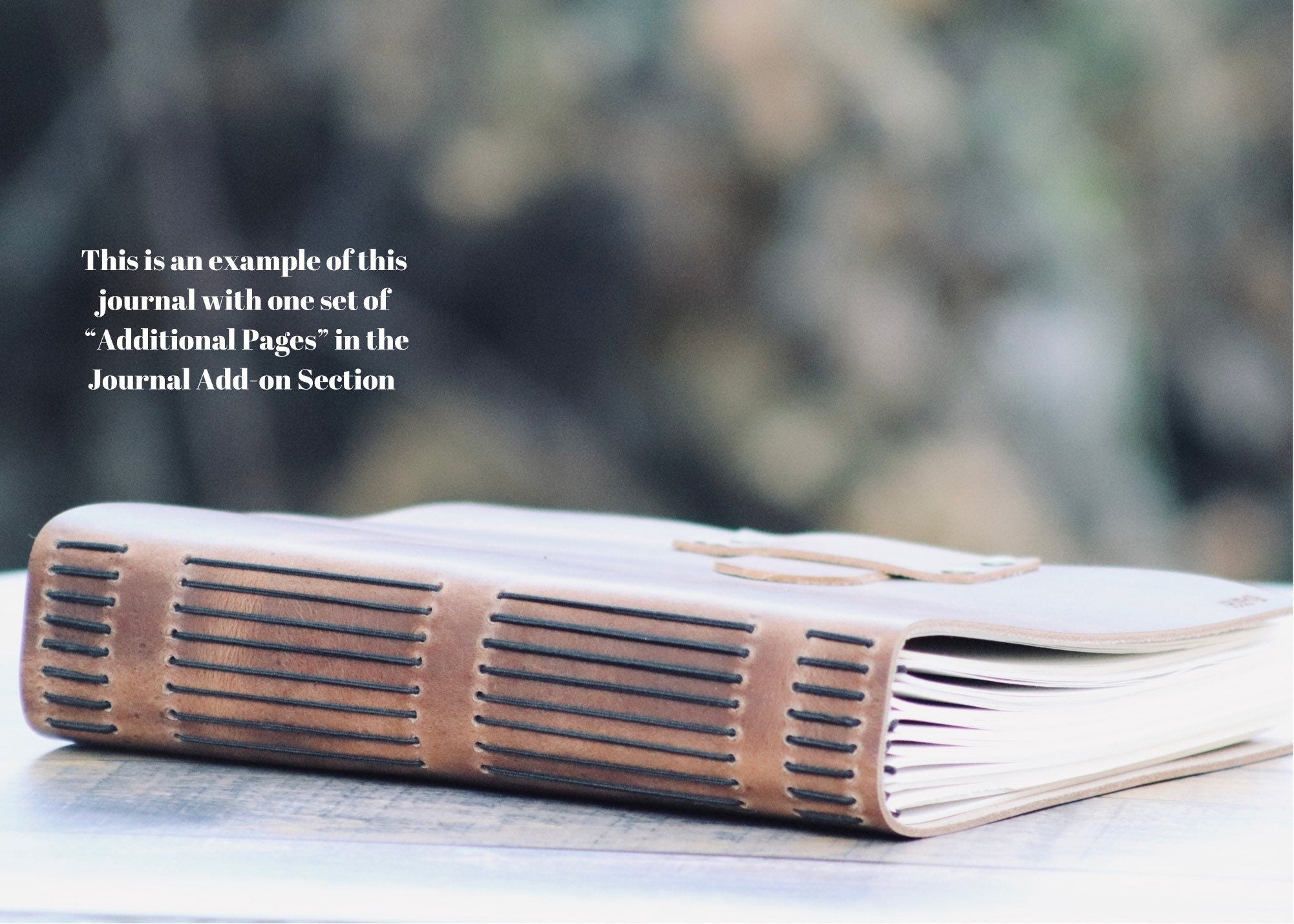 - This handcrafted leather journal features a leather slip-through enclosure.