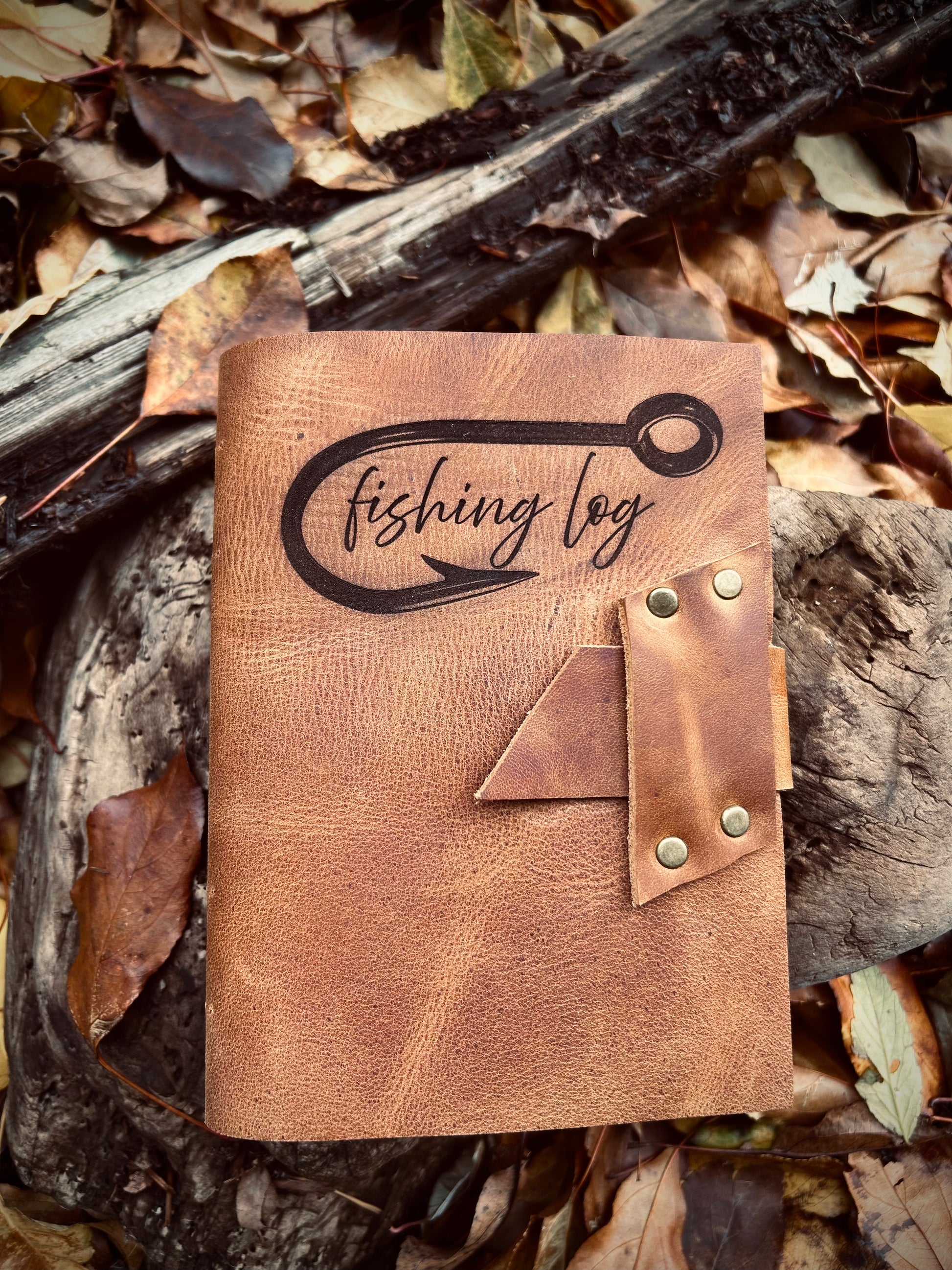 Engraved Leather Fishing Log Journal