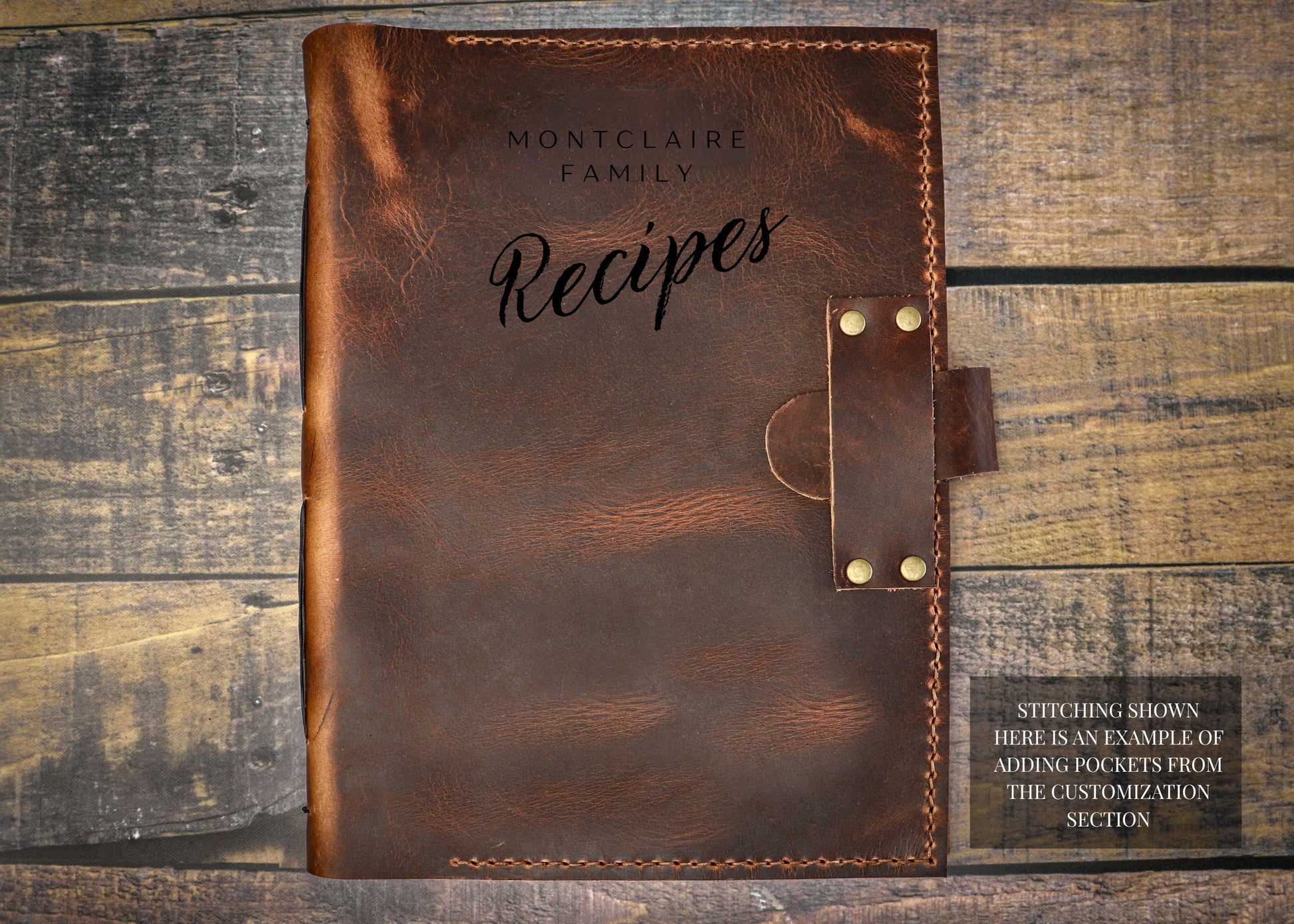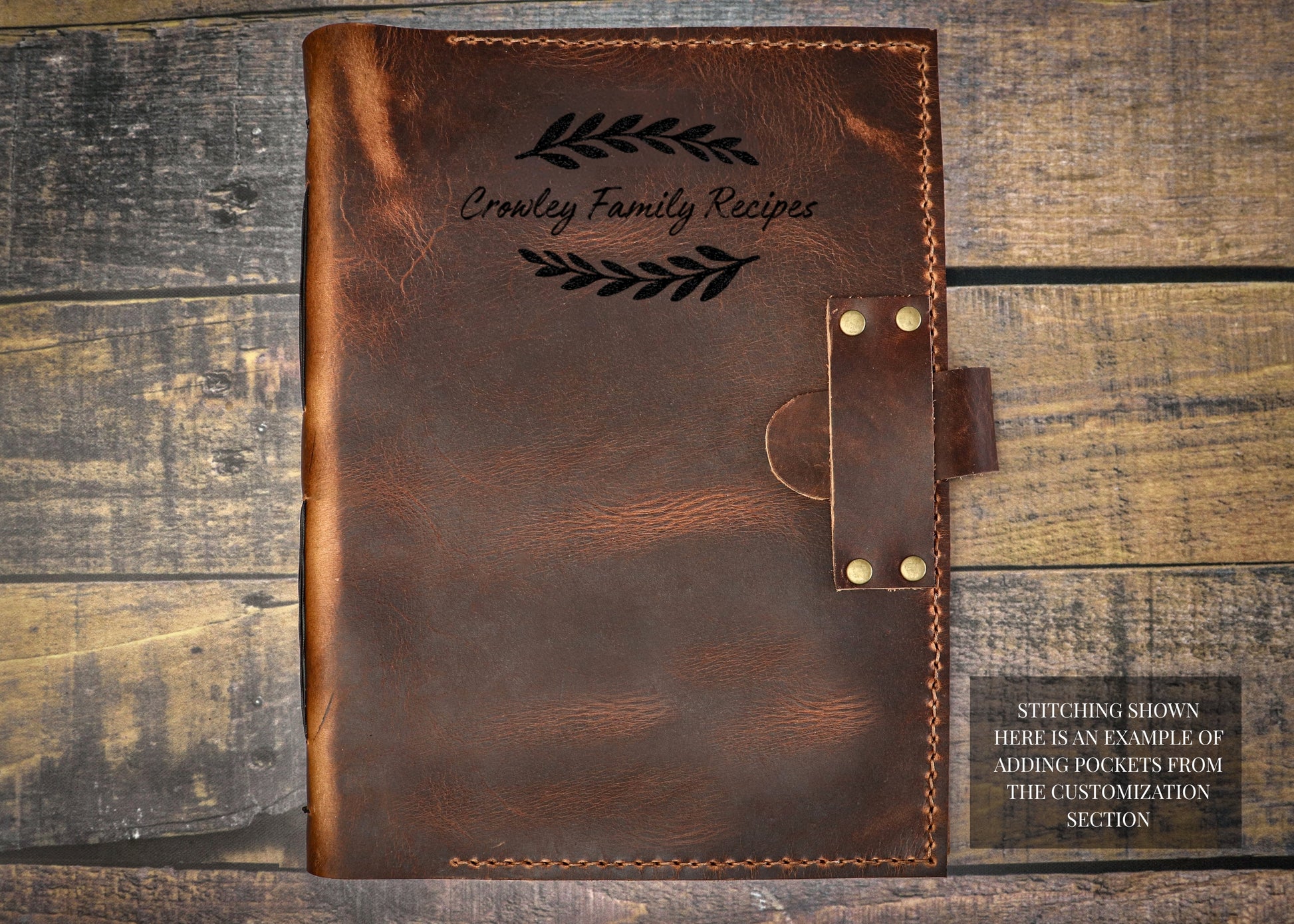 Engraved Leather Family Heirloom Recipe Journal, Sewn Bound in Full Grain Leather